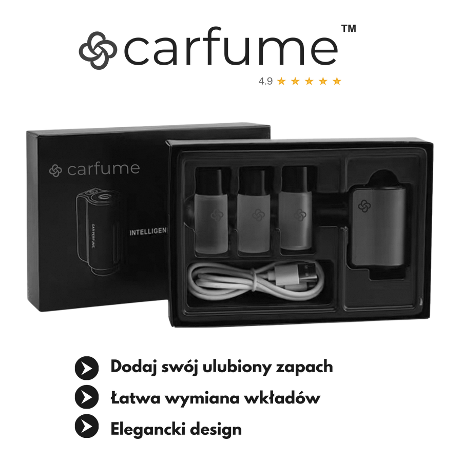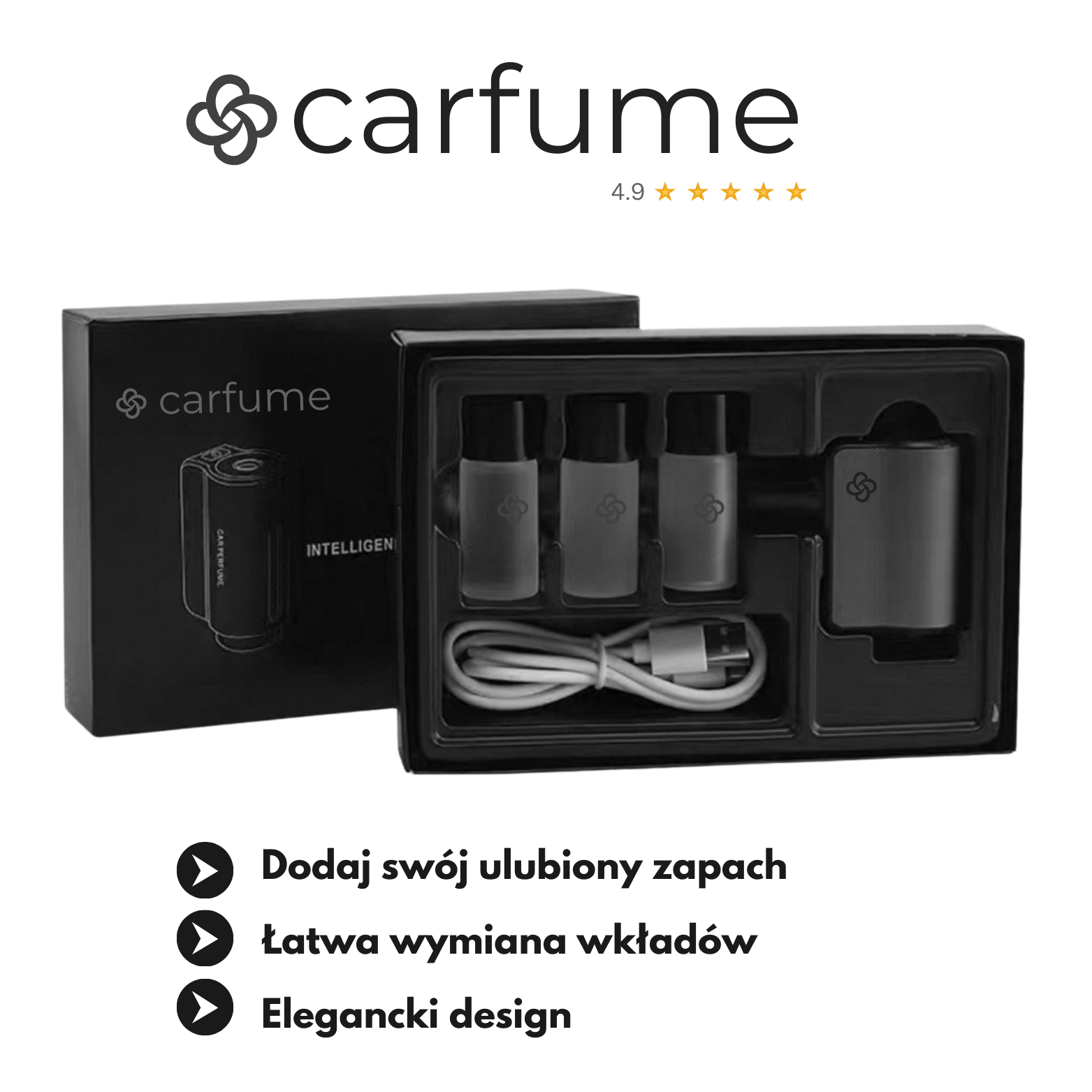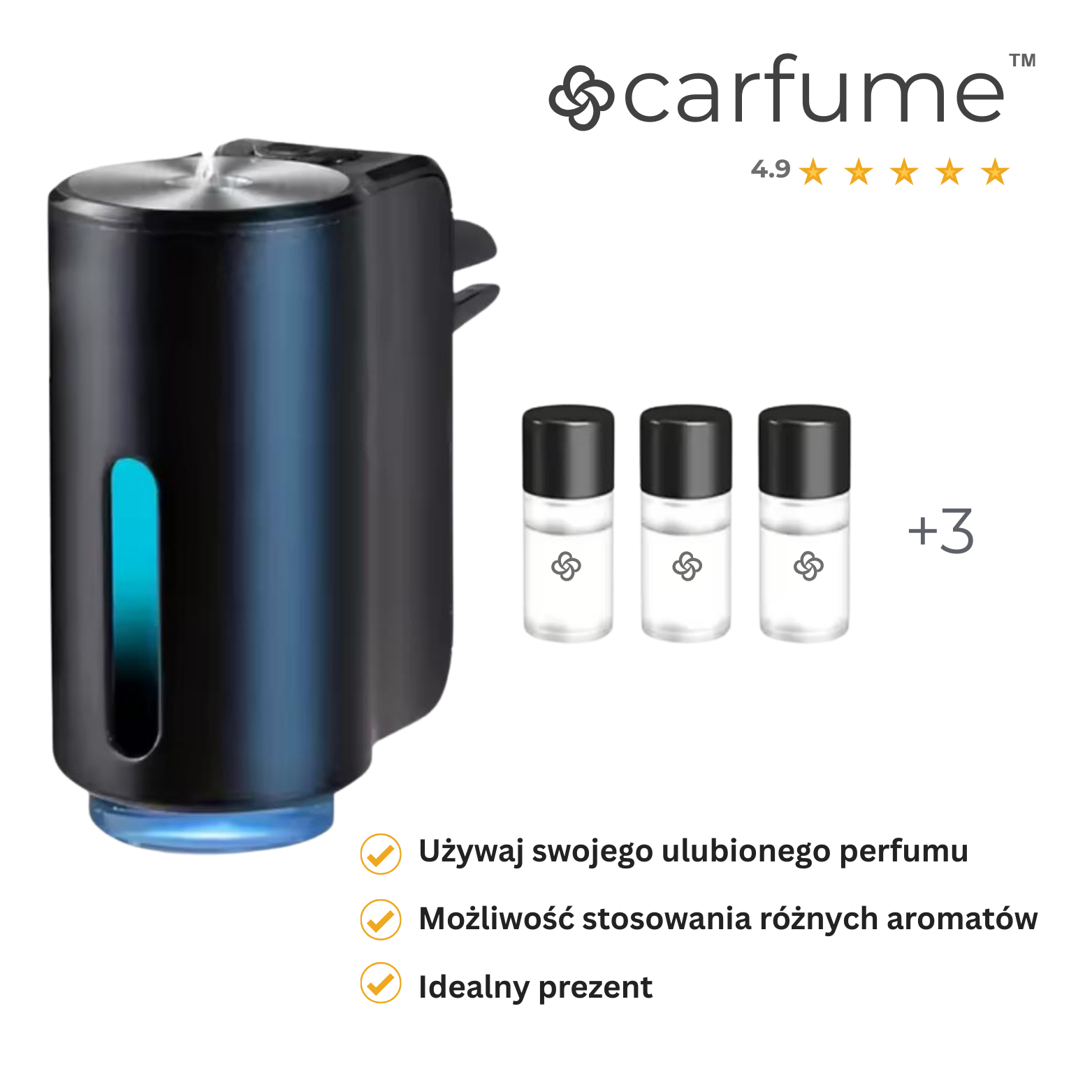 Zapomnij o sztucznych, chemicznych zapachach do auta. Nasz elegancki dyfuzor carfume™ pozwala Ci używać własnych, ulubionych perfum lub olejków zapachowych. Wystarczy wlać kilka kropel, włączyć, i cieszyć się długotrwałym, luksusowym aromatem przy każdej jeździe.
